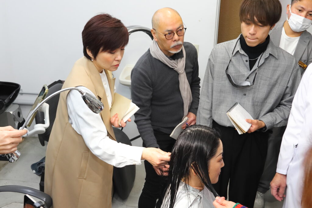 髪の病院セミナーでは、40代・50代のベテラン美容師さんがすぐに現場で活用できるよう、高単価メニューとして成立する「髪質改善と頭皮改善を両立させたヘッドスパ技術」を集中的に指導します。